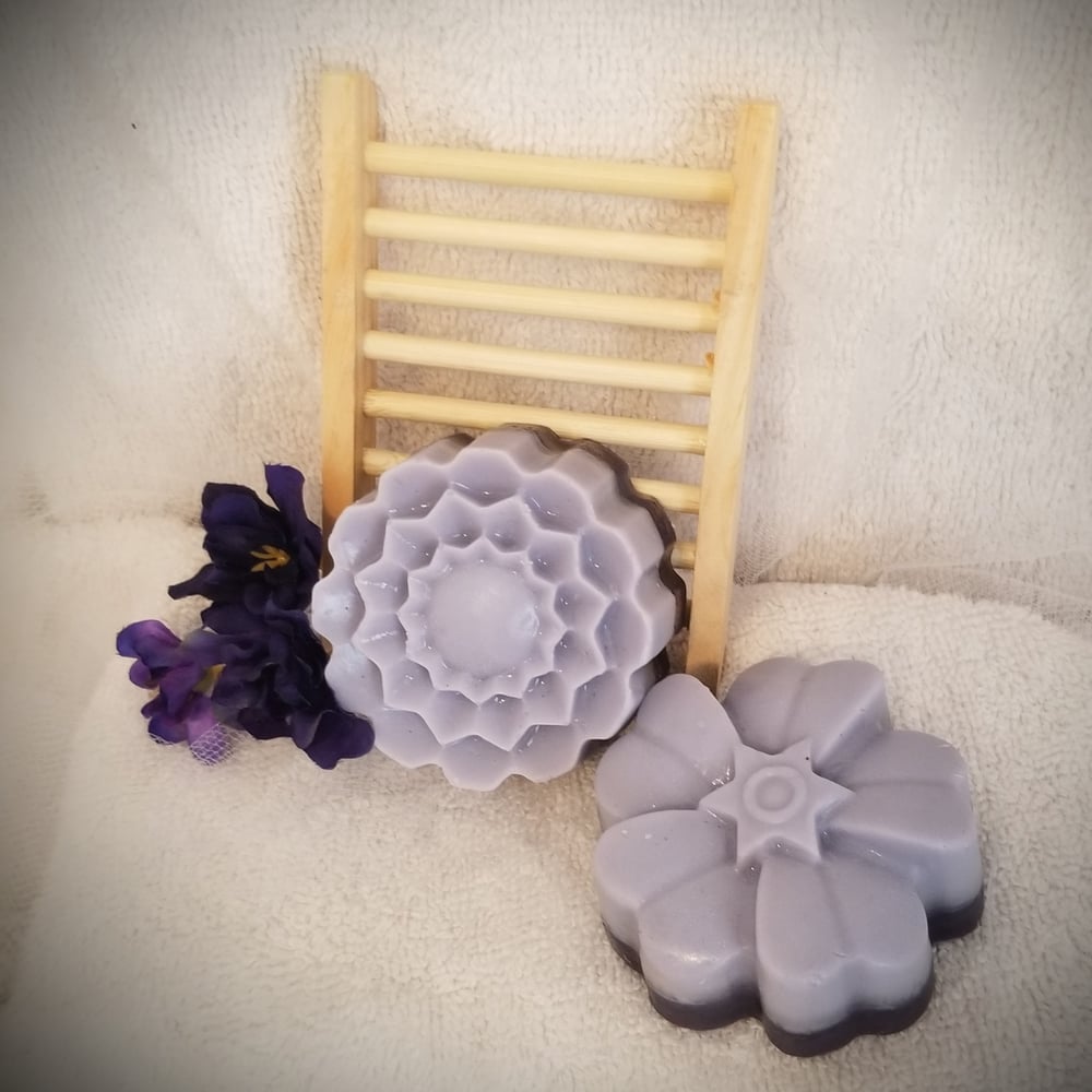 Hand soap featuring our Night Violet fragrance oil. It starts with notes of bergamot, lemon, cucumber water, violet, and jasmine. Then you pick up deeper notes of cashmere, musk, and sap. Each bar of soap is 4-5 oz. Diamond Soap Co. only uses all natural organic shea butter soap base and natural plant based clear glycerin soap base and aloe vera in all our hand soap.